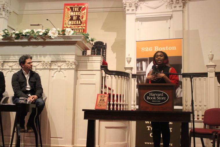 On Valentine’s Day, 826 co-founder and author Dave Eggers came to town to discuss his new book, The Monk of Mokha, with its subject Mokhtar Alkhanshali at a Harvard Book Store event.